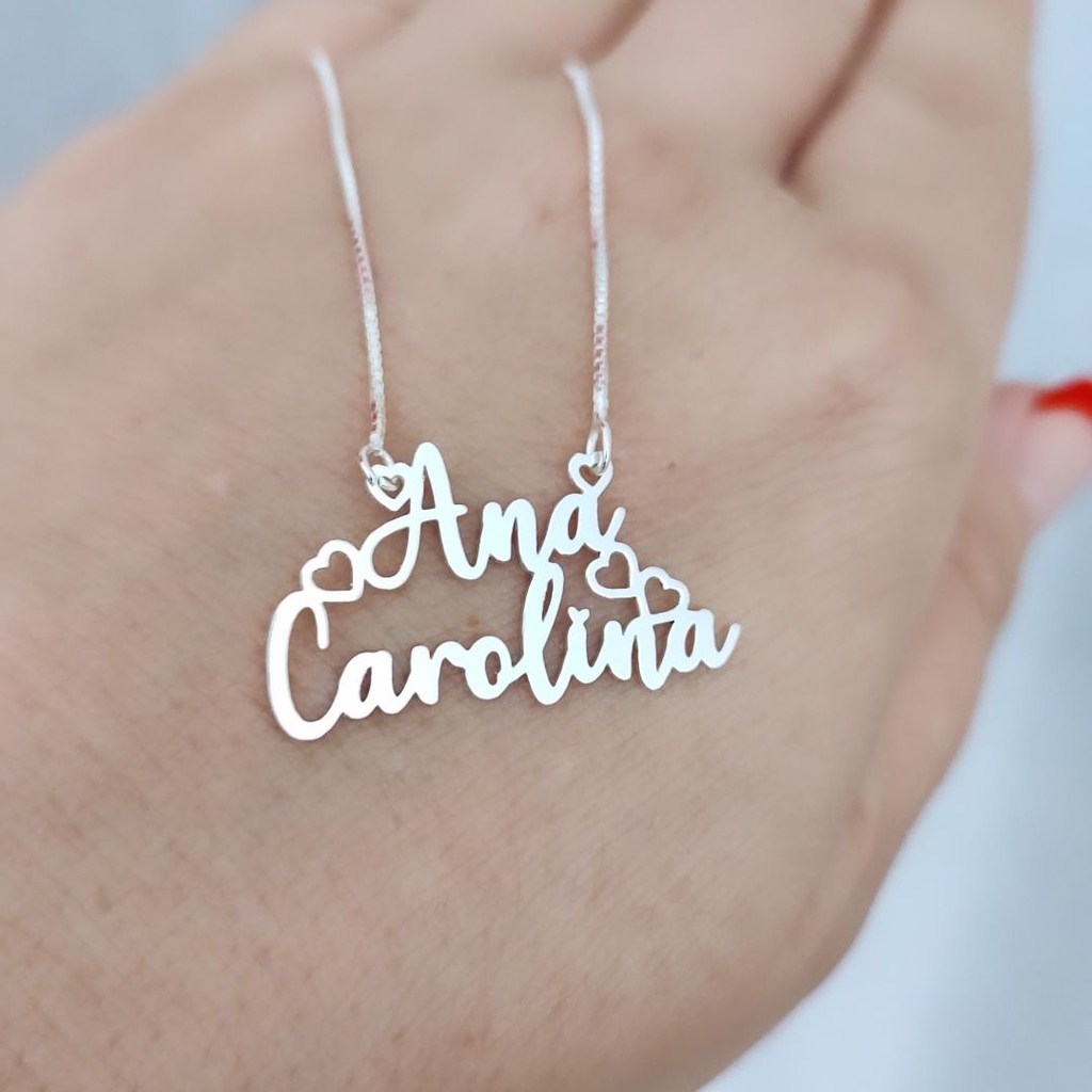 Colar com nome Duplo na prata 925, possui garantia vitalícia, na corrente modelo veneziana com 45cm + 5cm de extensor, ficando com total de 50cm de comprimento.